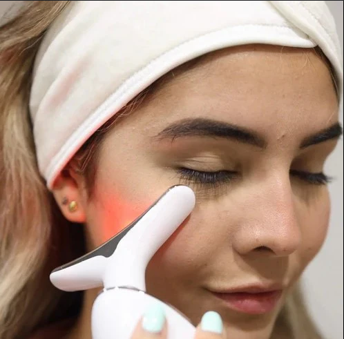 The 3-in-1 Facial Massager combines gentle heat, micro-vibrations and LED light to firm, smooth and brighten your skin — in just 5 minutes a day .